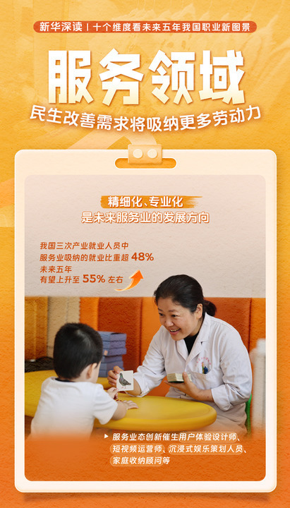 她认为,精细化、专业化是未来服务业的发展方向,在拓展更多就业空间的同时,也倒逼服务业必须加强职业标准化、规范化治理,进一步优化体验感,以此吸引消费者。